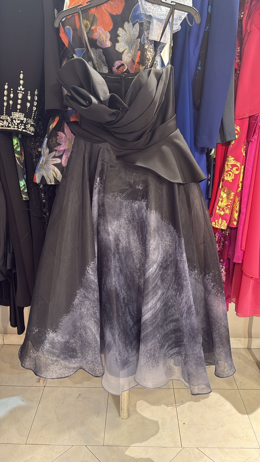 Vestido midi negro con falda degrade marca Terani